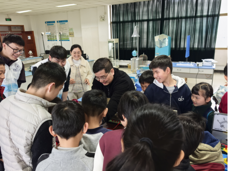 发展历程与科普资源建设成果;随后,一场生动有趣的《生活中的科学小奥秘》趣味科普课,通过“为什么天空是蓝色的”“静电从何而来”等贴近生活的案例,点燃了孩子们的求知热情。最受期待的“科普基地实践”环节中,孩子们走进实验室,近距离观摩基础工科实验演示,亲手操作简单仪器,感受工科魅力。从光学现象到电路连接,每一个实验都引来阵阵惊叹,科学的种子在孩子们心中悄然萌发。